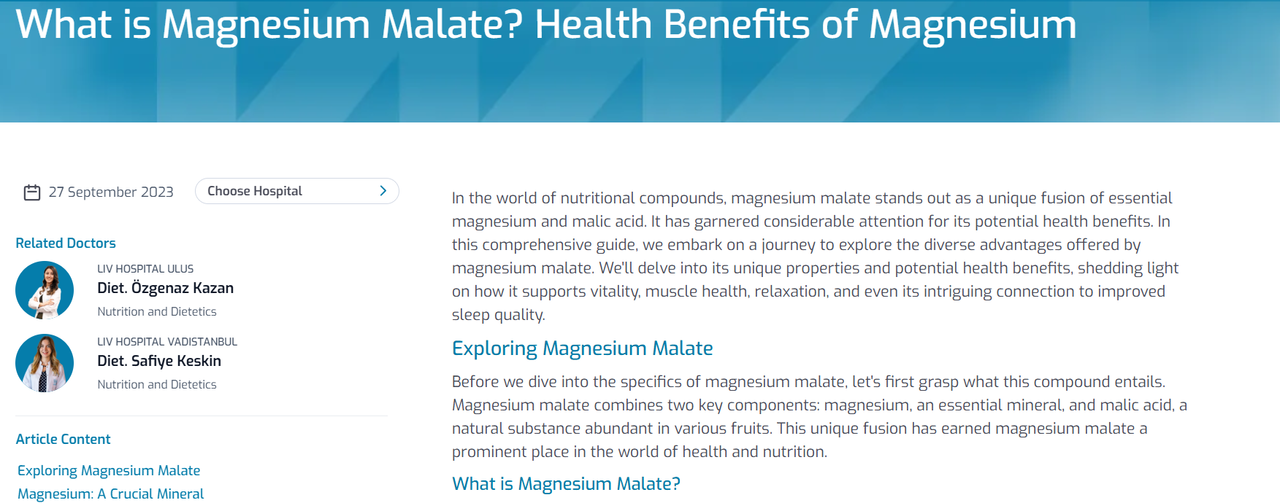 El malato de magnesio contribuye al metabolismo energético y al soporte muscular.